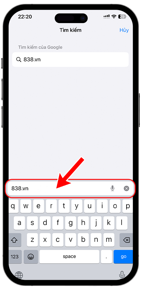 B2: Gõ 838.vn truy cập Website
