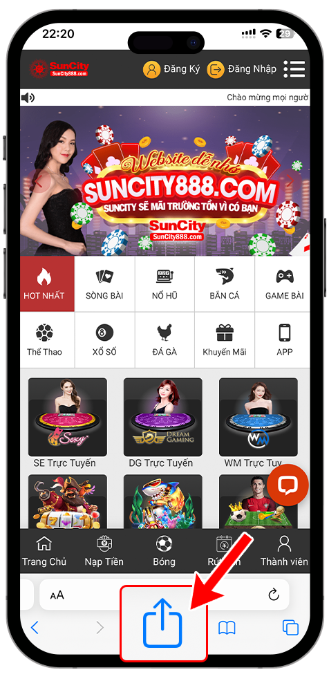 B6: App SunCity ngoài màn hình.